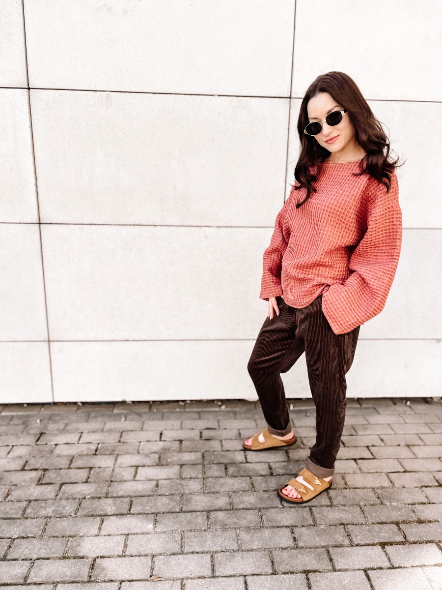 Ciemno-brązowy kolor jest niezwykle uniwersalny – świetnie komponuje się zarówno z neutralnymi odcieniami, jak i wyrazistymi akcentami, tworząc stylizacje casualowe, jak i eleganckie.