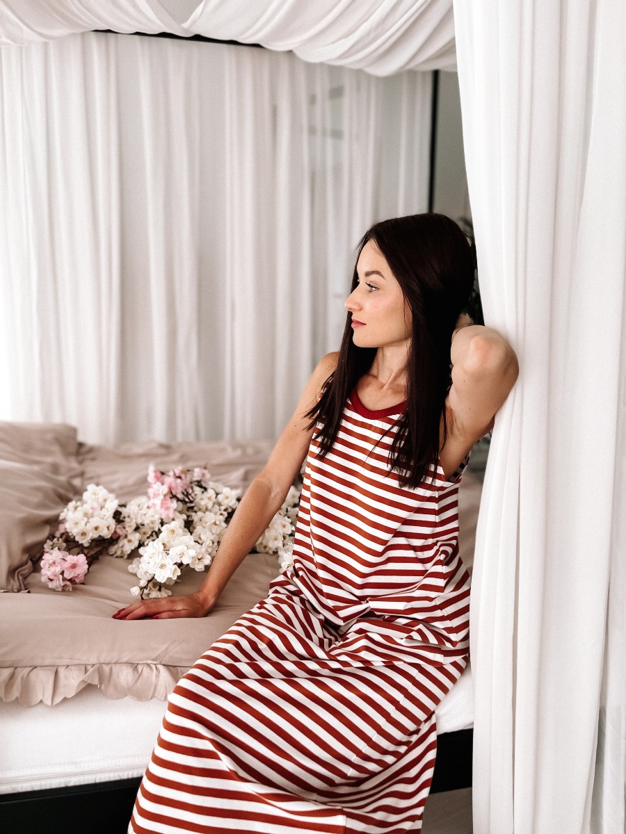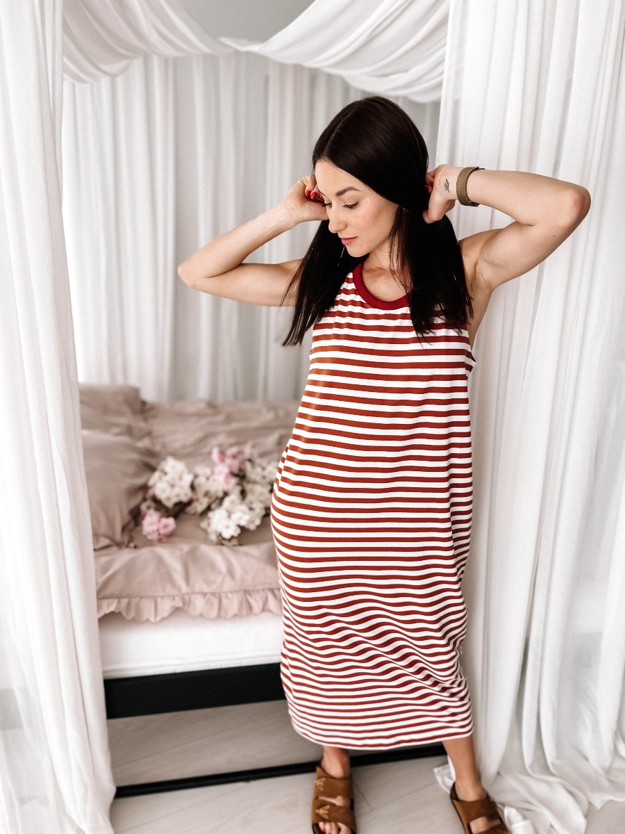 Sukienka w ceglane pasy – lekka sukienka damska na lato bawełna z elastanem
