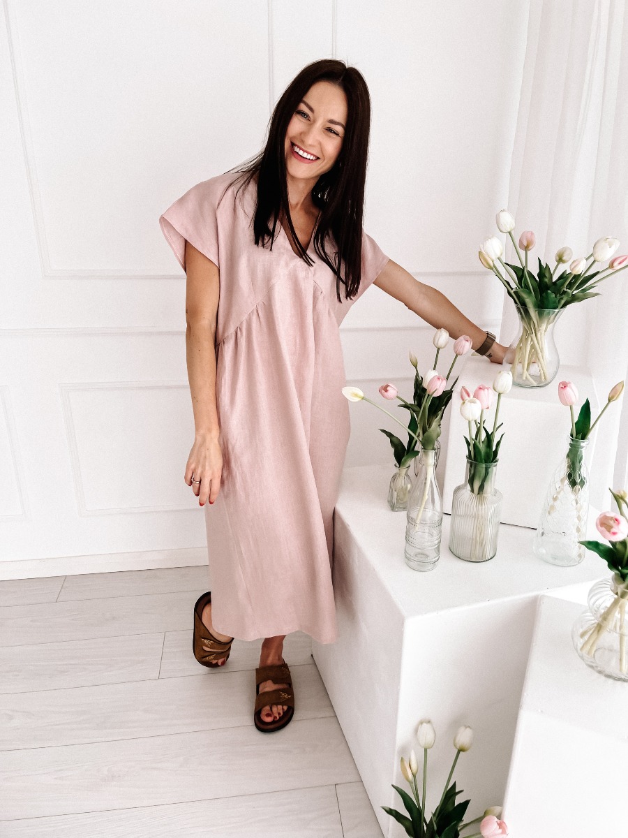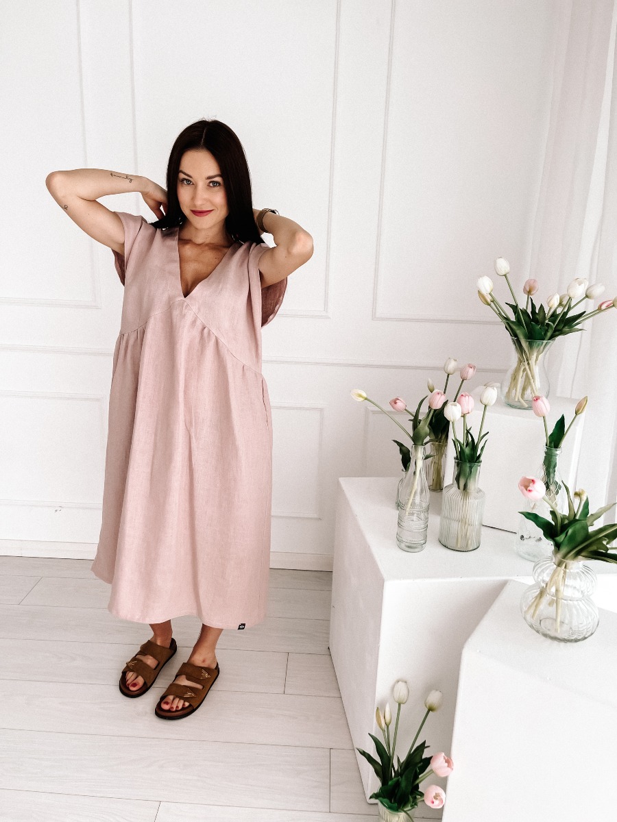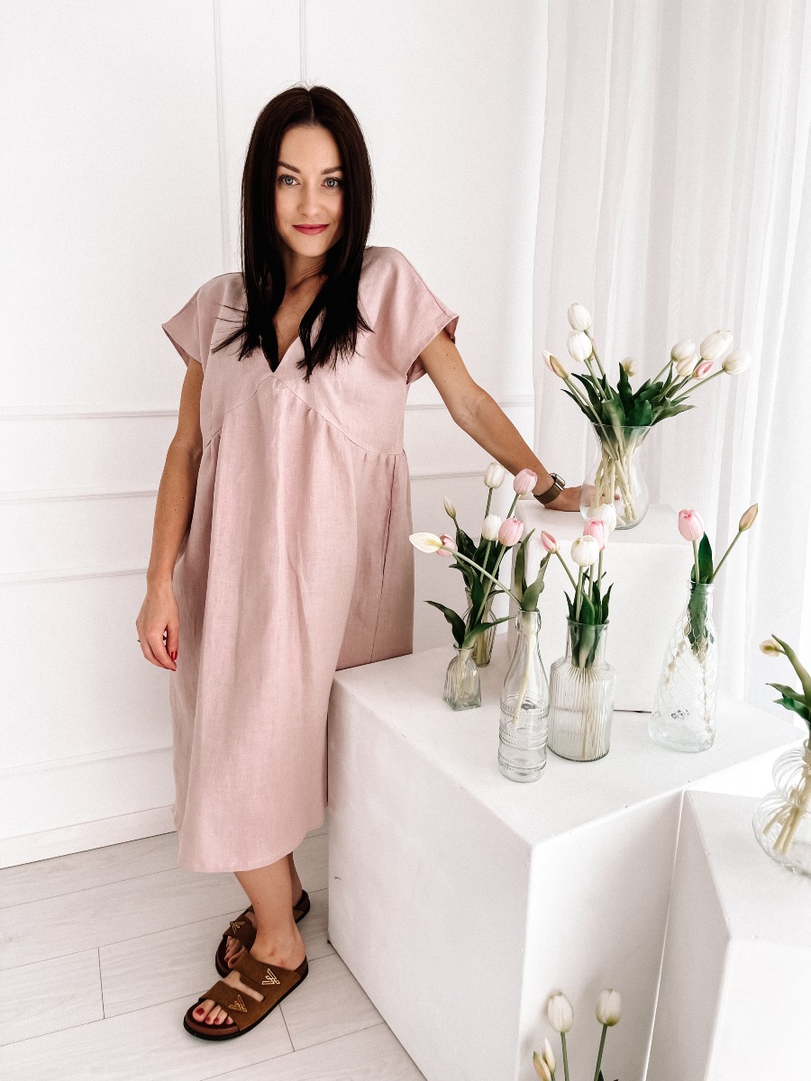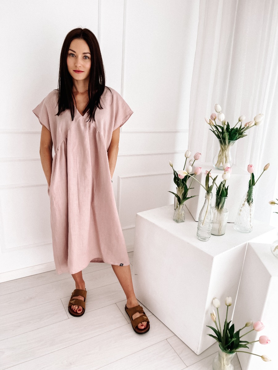 Lniana sukienka DAILY – pastelowy brudny róż | 100% len