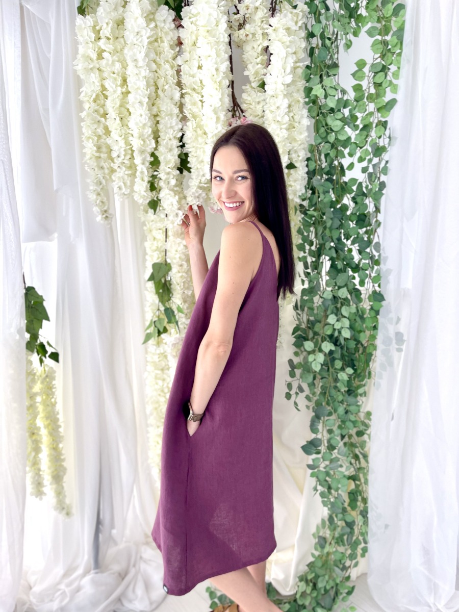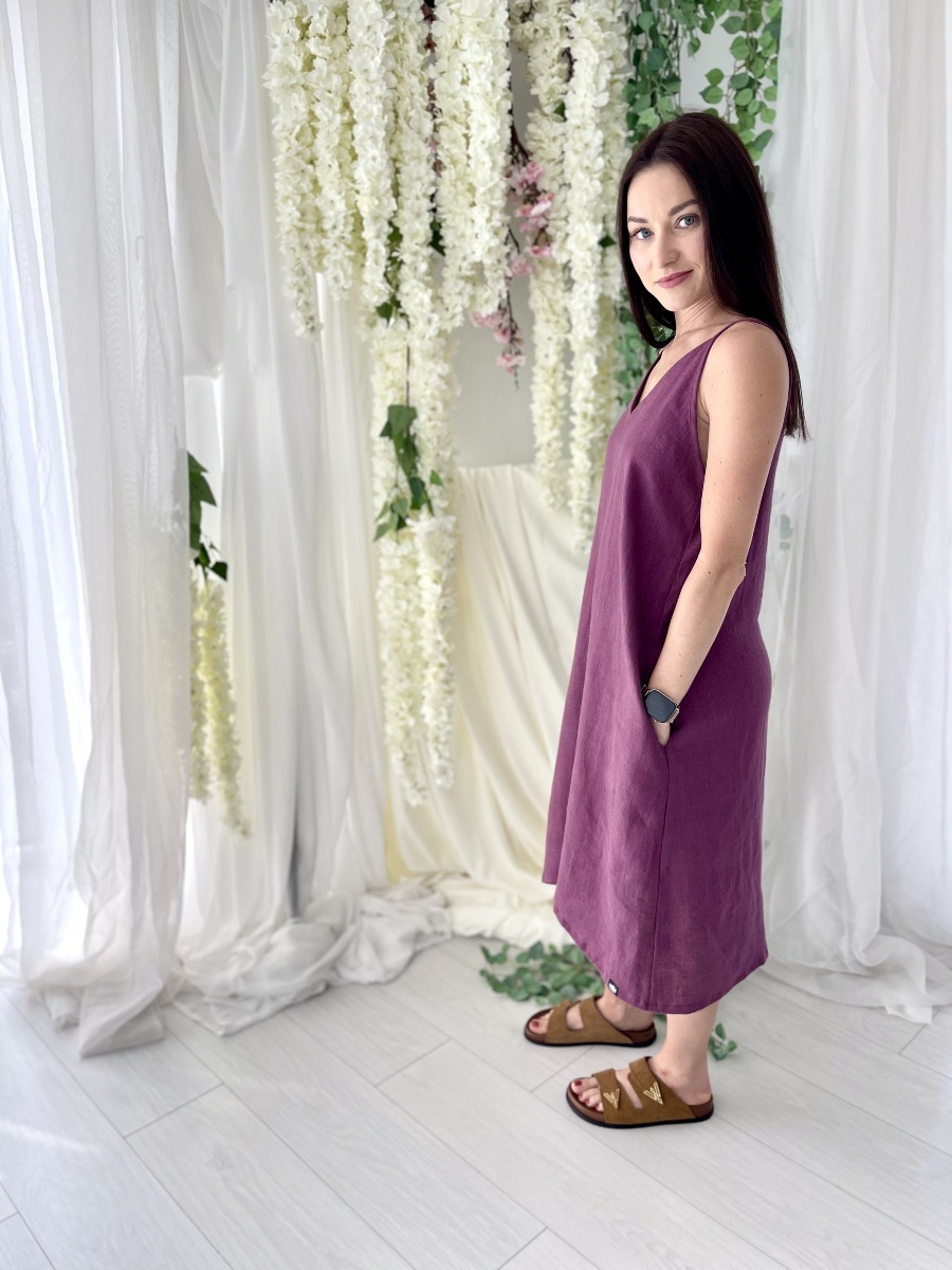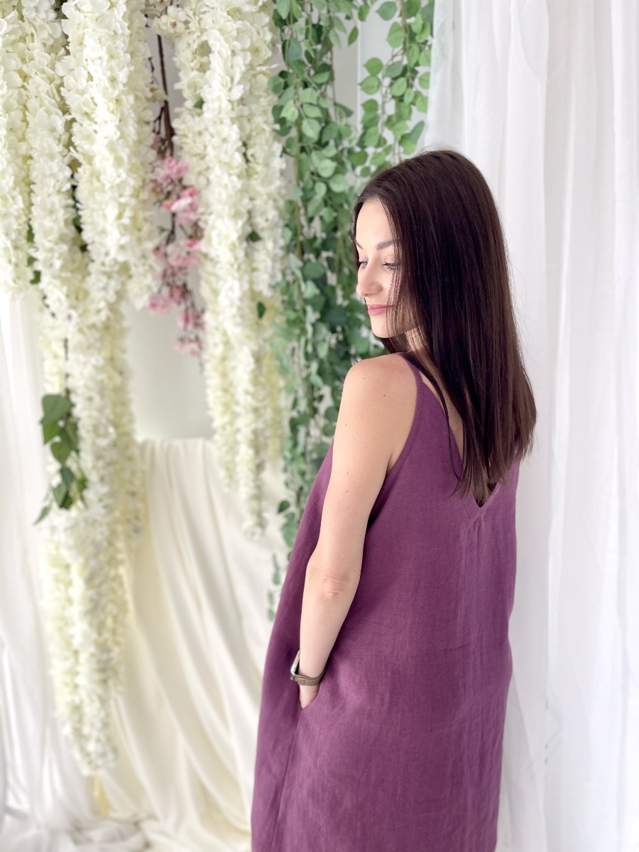 Lniana sukienka oversize w kolorze Purple FIG – lekka sukienka na lato 100% len