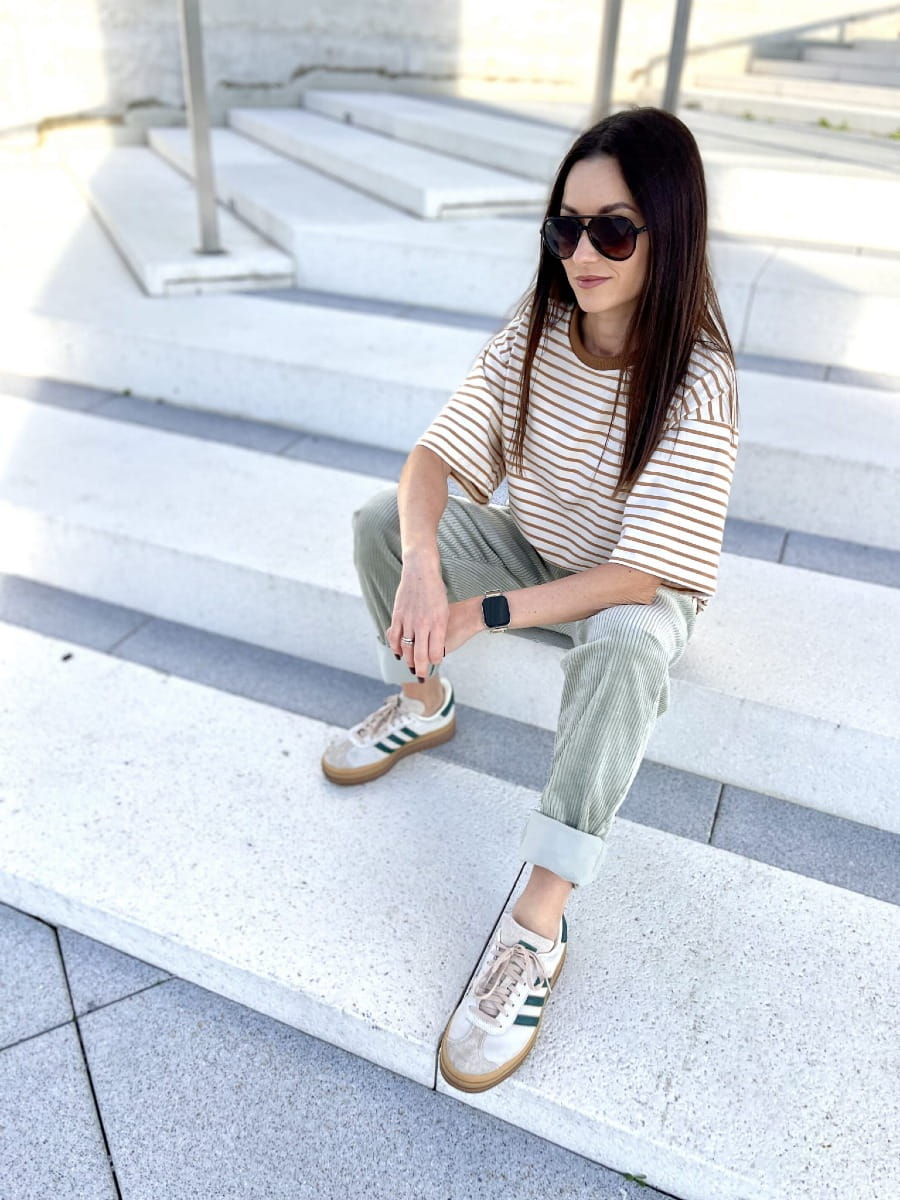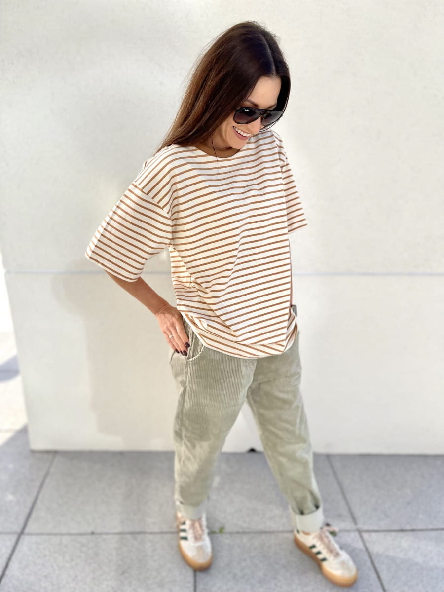 T-shirt w pasy w kolorze kremowo - karmelowym