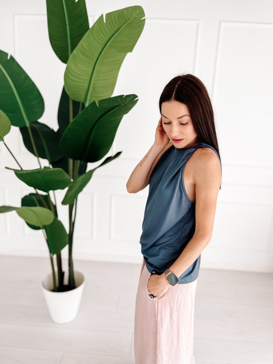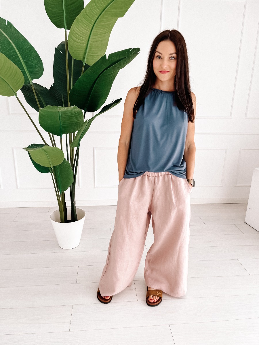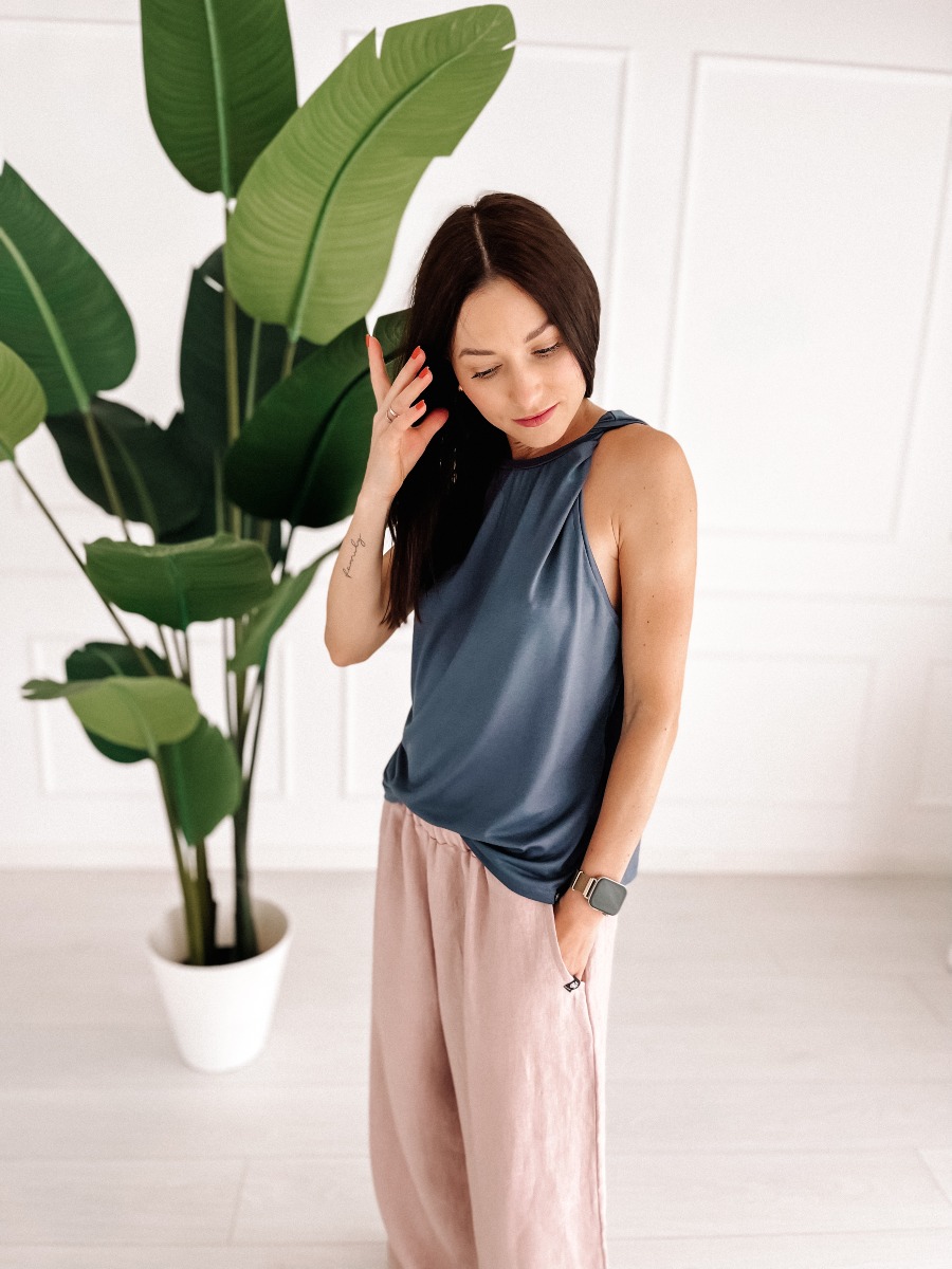 Top damski stalowo niebieski – lekki top na lato wiskoza z elastanem